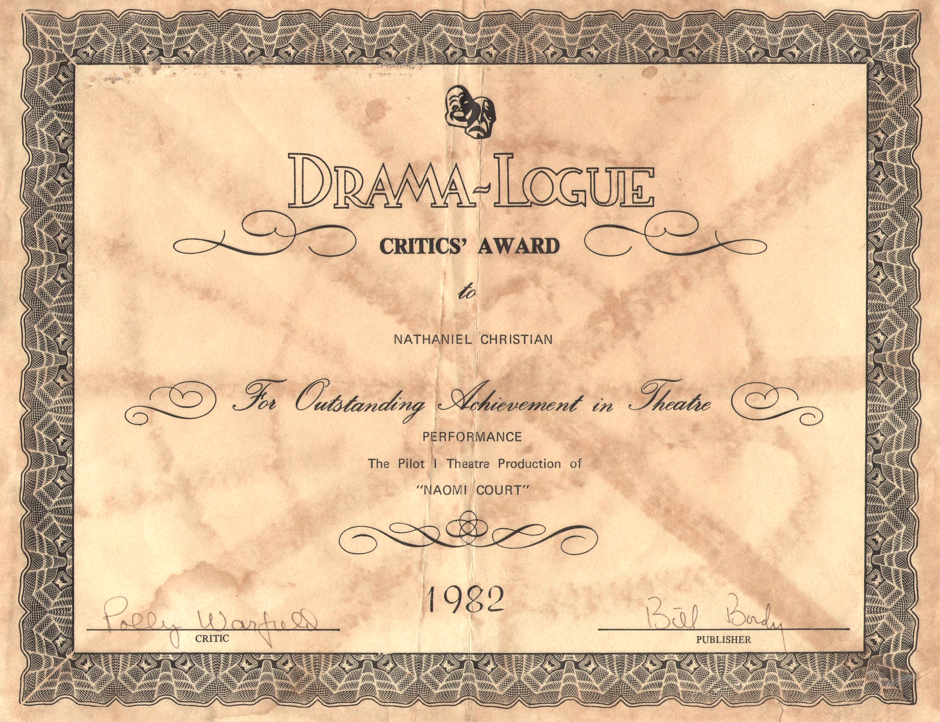 Nat Christian - DL Award - Naomi CourtNat Christian - WriteUp-TheaerNat Christian - Naomi Court -Cast ReviewNat Christian - Naomi Court - AD
